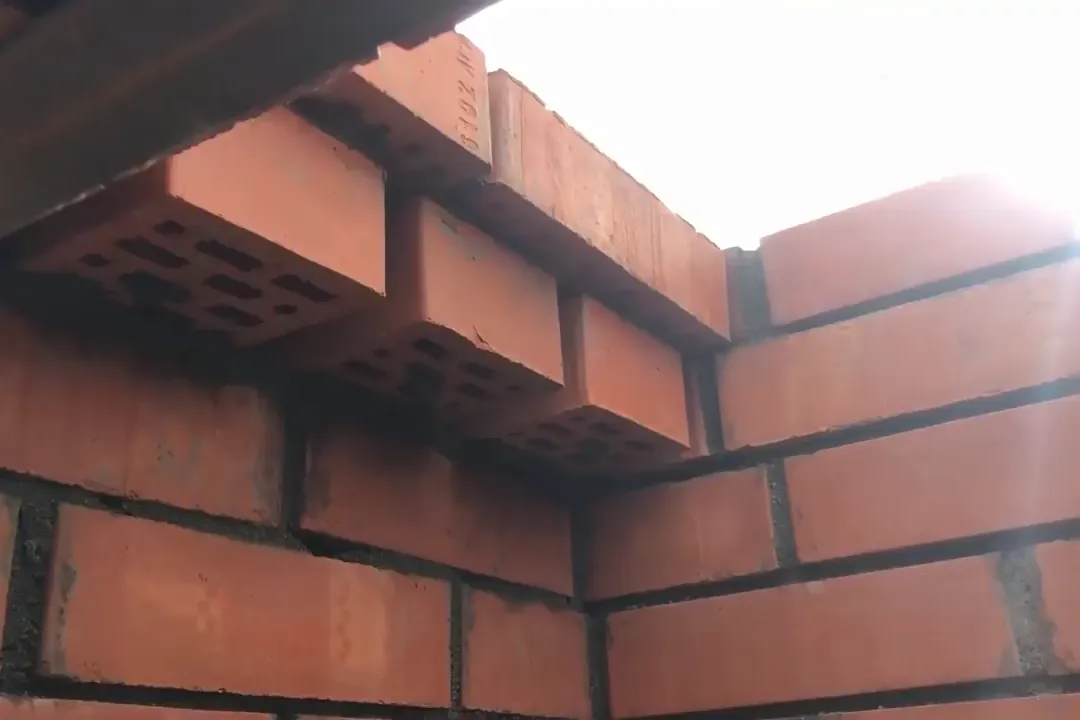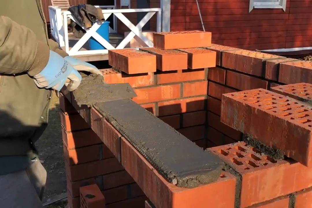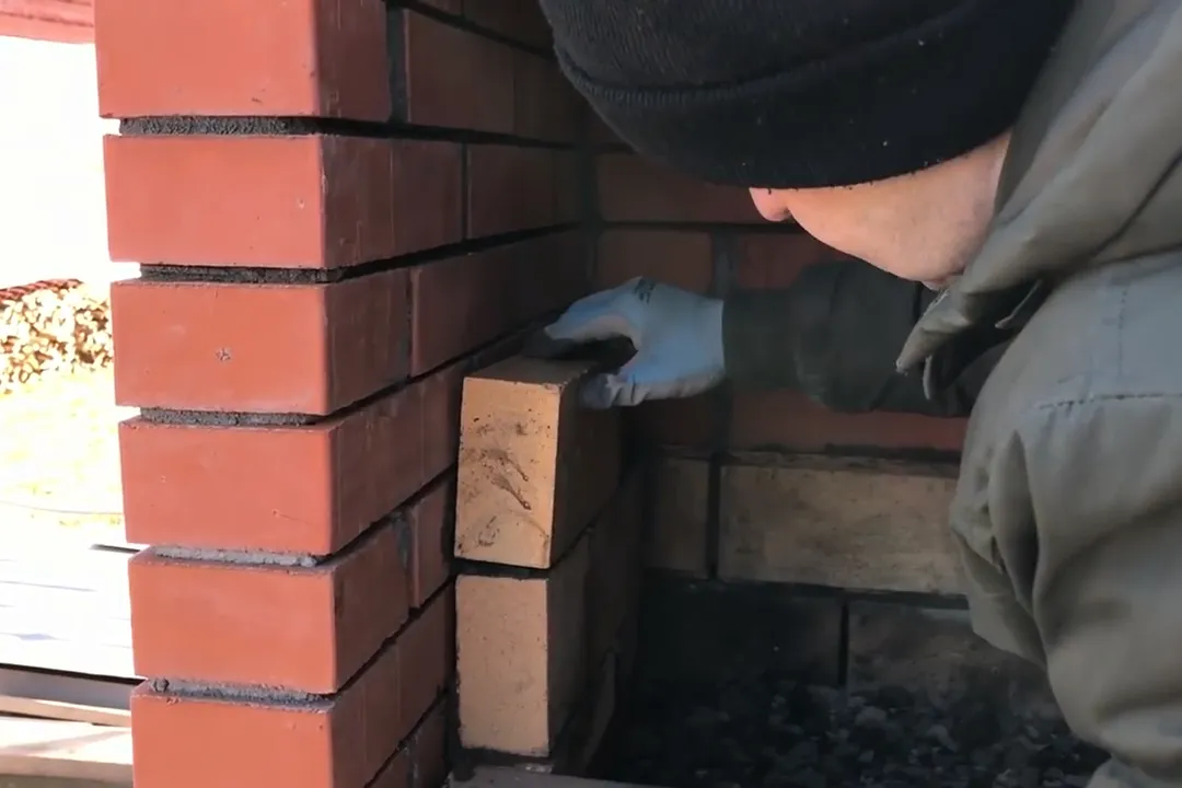 | 11 | Выложите колпак из 4 рядов кирпича. Для этого каждый последующий ряд сместите внутрь на 3 см, чтобы получить сужающуюся кверху конструкцию. |